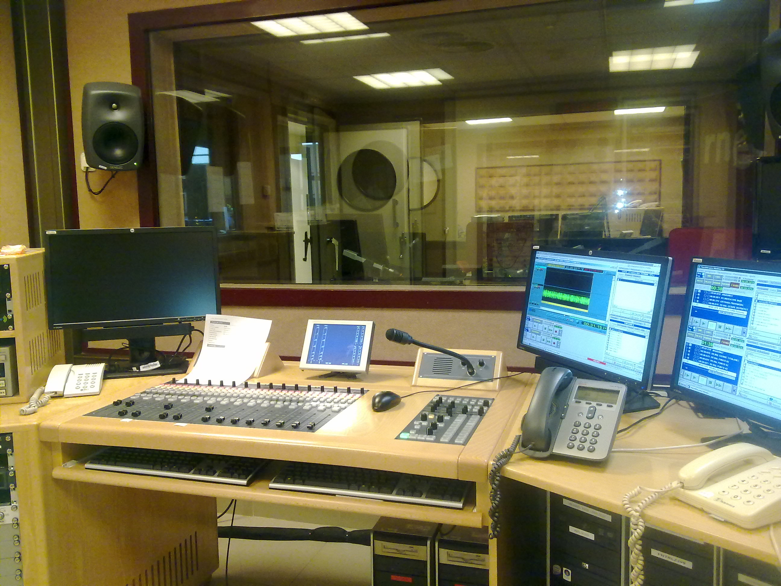 Lo que veis aquí es parte de lo que hay. Tampoco “sus” creais que hay mucho más, pero falta la parte del panel de conexiones (que es el verdadero corazón de cualquier emisora), y los locutorios, pero esto son, básicamente, habitaciones con mesas, sillas, micrófonos y auriculares. (que en este caso son sennheiser 441, y akg k141)